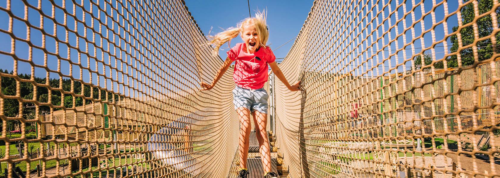 Our Rope Village is the safest form of a rope park as it is completely surrounded by a system of safety nets and can be used by children as young as 3 years old*.